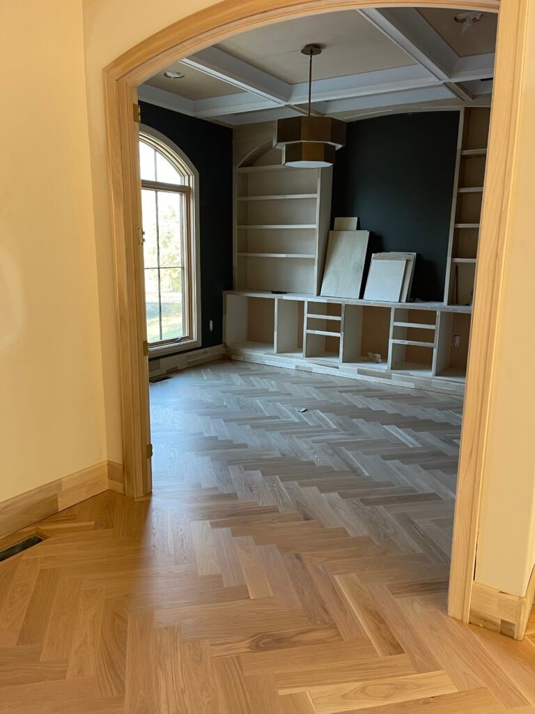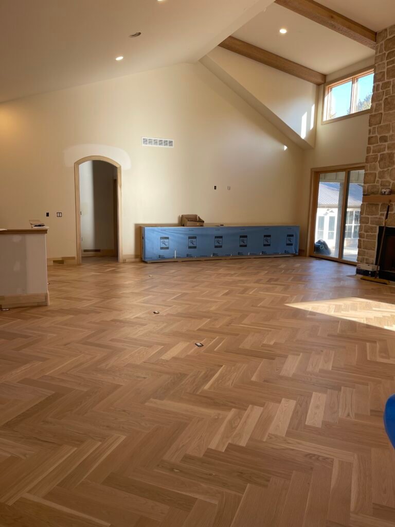 Mr. Felix Floor, Inc. is proud to have completed a premium hardwood flooring project in Delaware. The work included the installation and sanding of approximately 2,000 square feet of white oak parquet laid in a herringbone pattern using 4-inch-wide boards.